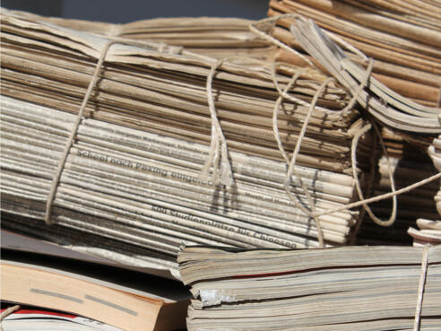 Altpapier- und Altkleidersammlung - Sammlung von Zeitungen, Zeitschriften, Katalogen und Gebrauchtkleidern. Bitte stellen Sie das Altpapier gebündelt und die Plastiksäcke mit gebrauchter, noch tragfähiger Kleidung oder Schuhen bis 08:00 Uhr am Straßenrand bereit. Plastiktüten liegen ca. 1 Monat vorher in der Kirche auf.