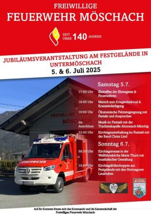 17:00 Uhr Eintreffen der Ehrengäste und Feuerwehren am Festgelände in Untermöschach