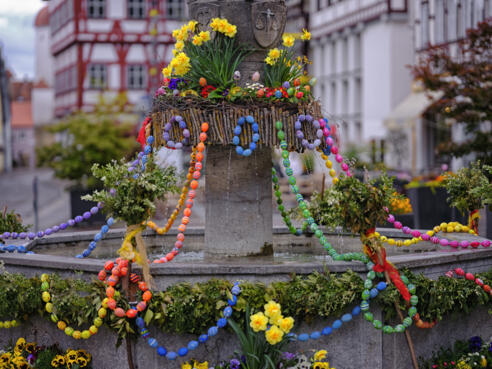 Dieser vor allem im benachbarten mittelfränkischen Raum weit verbreitete Brauch des österlichen Schmückens der Brunnen hat in der Stadt Oettingen bereits eine lange Tradition. Über die Festtage sind zehn Brunnen in der Stadt liebevoll mit bunten Eiern, Blumen, Gebäck und geweihten Palmbuschen dekoriert (13.04.-27.04.2025). Am Ostermontag, 21. April 2025 findet auf dem Marktplatz das traditionelle Osterbrunnenfest mit verschiedenen Aktionen und Führungen zu den Osterbrunnen statt.