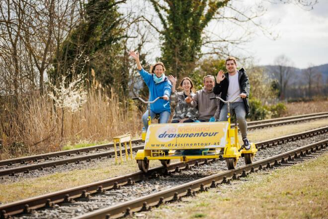 Die Teilnahme für Radfahrer:innen sowie die Fahrt mit den Draisinen sind kostenlos!