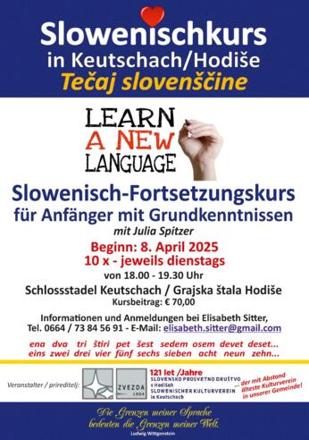 Der slowenische Kulturverein ZVEZDA Keutschach/Hodiše startet wieder mit einem Slowenischkurs für Anfänger mit Grundkenntnissen am Dienstag den 8. April.