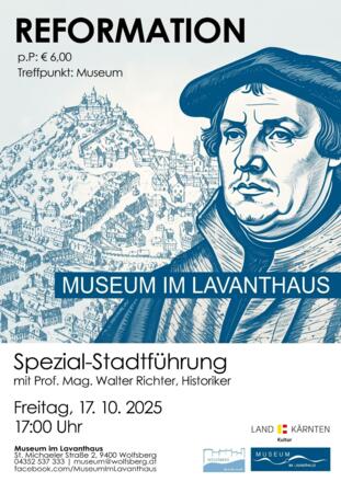 Am Freitag, dem 17. Oktober 2025, findet eine besondere Stadtführung durch Wolfsberg mit dem Historiker Prof. Mag. Walter Richter statt. Die Führung dauert etwa zwei Stunden und bietet spannende Einblicke in die Anfänge der Reformation in Kärnten. Bereits im Jahr 1525 bekannte sich der Guardian des Minoritenklosters öffentlich zu den Lehren Martin Luthers. Damit begann die Reformation in der damals katholisch-bischöflich geprägten Bambergstadt Wolfsberg – und zwar früher als in jedem anderen Ort Kärntens.
