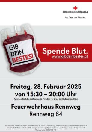 Die Bevölkerung von Rennweg und Umgebung wird gebeten, sich zahlreich an dieser Blutspendeaktion zu beteiligen.