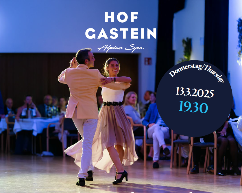 Freuen Sie sich auf einen entspannten Abend im Rahmen des Tanz:Fest Gastein voller Musik, Tanz und geselliger Atmosphäre. Im stilvollen Ambiente des Kursaals können Sie die Tanzfläche erobern, neue Schritte ausprobieren und den Abend in ungezwungener Stimmung genießen.
