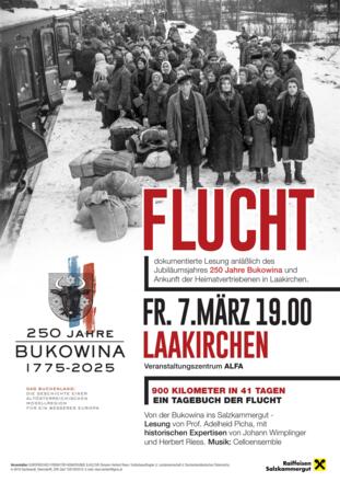 Die historische Bukowina, einst eine multikulturelle Region der Habsburgermonarchie, umfasste Teile der heutigen Ukraine und Rumäniens. Sie war über Jahrhunderte ein Ort des friedlichen Miteinanders, geprägt von kultureller Vielfalt und dem Zusammenleben unterschiedlicher Ethnien und Religionen. Durch politische Umbrüche sowie dem Ausbruch des 2.Weltkrieges, erlebten alle Deutschstämmigen in der Bukowina – Umsiedlung/Evakuierung und schlussendlich die Flucht, welche für viele vor 80 Jahren im Salzkammergut endete.
