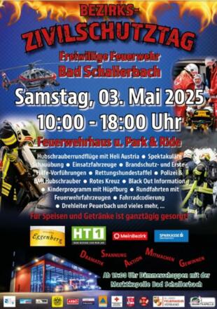 Hubschreiberrundflüge mit Heli Austria, Spektakuläre Schauübung, Einsatzfahrzeuge, Brandschutz- und Erste-Hilfe-Vorführungen, Rettungshundestaffel, Polizei & BMI Hubschrauber, Rotes Kreuz, Black Out Information, Kinderprogramm mit Hüpfburg, Rundfahrten mit Feuerwehrfahrzeugen, Fahrradcodierung, Drehleiter Peuerbach und vieles mehr. Für Speisen und Getränke ist gesorgt.