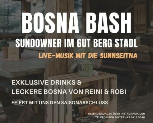 Genießt exklusive Drinks, legendäre Bosna von Reini & Robi und dazu Live-Musik von die Sunnseitna.