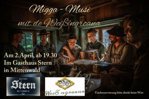 Zünftige Musi kulinarisch umrahmt.Tischreservierung bitte direkt im Gasthof Stern unter: