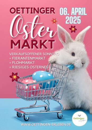 Einladung zum Ostermarkt in OettingenWir laden alle Interessierten herzlich zu unserem diesjährigen Frühjahrsmarkt ein.Wann? Sonntag 6. April 2025 ab 11.00 UhrWo? Innenstadt von OettingenProgrammhighlights: