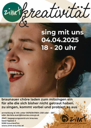 Singen tut der Stimme und der Seele gut. Neben Proben und Auftritten pflegen die Chöre auch das Miteinander, etwa mit gemeinsamen Aktivitäten und Ausflügen. Der Abend im ZIMT Braunau bietet die ideale Gelegenheit, die Chöre und ihr Angebot kennenzulernen. Alle Musik- und Gesangsbegeisterten sind herzlich eingeladen. Beginn ist um 18 Uhr, um Anmeldung unter nina.hofmann@braunau.ooe.gv.at oder daniela.auer@braunau.ooe.gv.at wird ersucht.