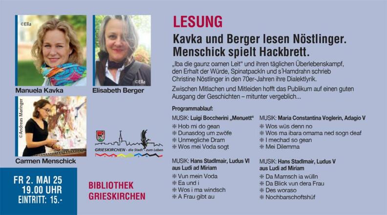 Kavka und Berger lesen Nöstlinger. Menschick spielt Hackbrett