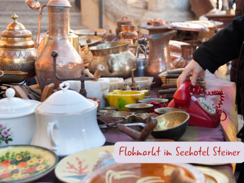 Flohmarkt im Seehotel Steiner - Süduferweg 2-4 in Seeboden von 08 - 18 Uhr. Entdecken Sie gebrauchte Hotelartikel zum Stöbern und mitnehmen!