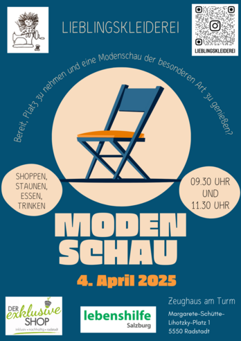 Am Freitag, den 4. April 2025 veranstaltet die Lieblingskleiderei in Zusammenarbeit mit dem exklusiven Shop und der Lebenshilfe Salzburg eine Modenschau der besonderen Art. Jeweils um 09:30 Uhr und um 11:30 Uhr werden tolle Kreationen vorgestellt, in der Zwischenzeit laden die Veranstalter*innen zum Shoppen, Staunen, Essen und Trinken.