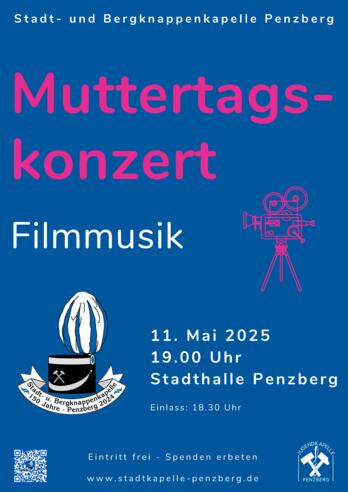 Beim traditionellen Muttertagskonzert der Stadtkapelle Penzberg liegt dieses Jahr der Schwerpunkt auf dem Thema Filmmusik. Zusammen mit der Jugendkapelle wird ein spannendes Programm geboten. Ein besonderer Programmpunkt wird wieder eine Uraufführung des Penzberger Komponisten Michael Lindinger sein, der zum Anlass der ersten urkundlichen Erwähnung Penzbergs vor 750 Jahren wieder ein Werk für die Stadtkapelle geschrieben hat.