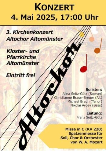 Kirchenkonzert des Altochor Altomünster - Missa in C (KV 220) "Spatzenmesse" für Soli, Chor & Orchester von W. A. Mozart