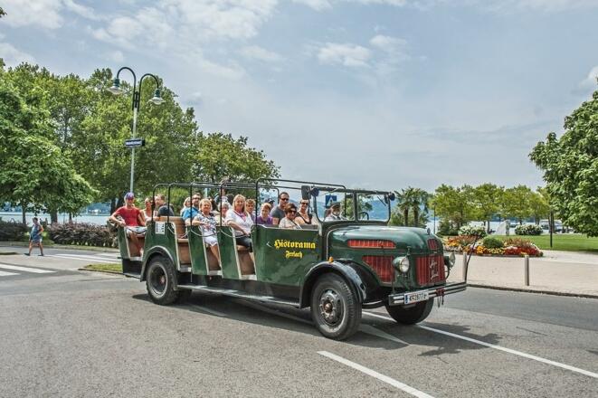 Vorbei am Golfplatz Seltenheim mit seinem Schloss und dem mittelalterlichen Hallegg mit seinen Teichen fahren wir mit einem kurzen Blick auf den „Schrottenturm“ in die Ostbucht, wo eine einstündige Schifffahrt am Programm steht. Danach geht es dem Lendkanal entlang wieder in die Innenstadt.