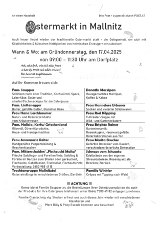 am Gründonnerstag, den 17.04.2025 von 09:00 bis 11:30 Uhr am Dorfplatz in Mallnitz