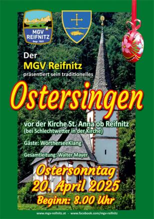Der MGV Reifnitz präsentiert sein traditionelles Ostersingen vor der St. Anna Kirche in Reifnitz.