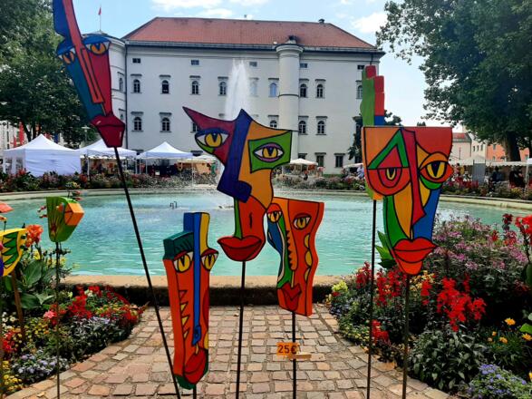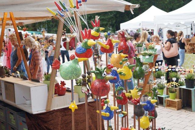 Rund 30 Stände präsentieren sich bunt, edel und verspielt und bieten eine vielfältige Auswahl an Zier- und Gebrauchsgegenständen aus Keramik, Holz, Metall Edelsteinen, Glas, Acryl, Stoff und Naturmaterialien. Freunde eleganten Wohnens und stilvoller Dekoration kommen hier ebenso auf ihre Kosten wie Liebhaber origineller Gartendeko.
