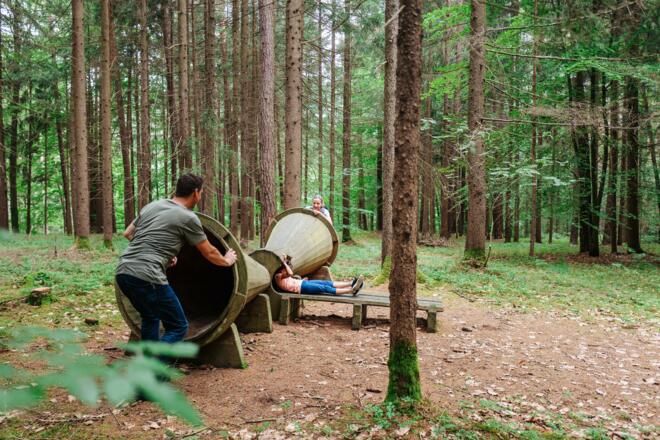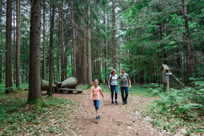 Am Ende der Forschungsreise wartet eine abenteuerliche Seilbahn zum Toben und ein gemütlicher Picknickplatz zum Rasten auf alle kleinen und großen Wanderer.