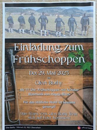 Zum Frühschoppen mit der Musikgruppe "Hepta Blech" wird ab 11:00 Uhr beim Glen Bothy eingeladen.