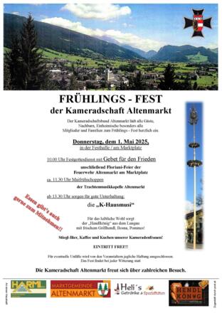 Der Kameradschaftsbund Altenmarkt lädt alle Gäste, Nachbarn, Einheimische besonders alle Mitglieder und Familien zum Frühlings-Fest herzlich ein.