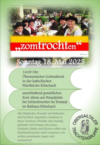 Alle Mitglieder, Freunde und Bekannte sind herzlich eingeladen, kommen in ihren Trachten, Dirndln oder trachtig gekleidet und bringen ihre Jause, Getränke, Kaffee und Kuchen selber mit.