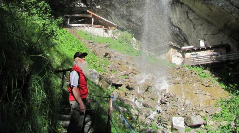 Ein Naturdenkmal der besonderen Art. Die Schauhöhle "Entrische Kirche" (wörtlich übersetzt, "umheimliche Höhle") ist zum Teil Trocken-, Tropfstein- und Wasserhöhle. eine Großhöhle im Urzustand.