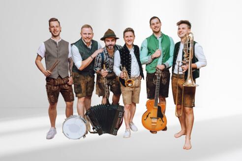 Viel Herzblut, Kreativität und Spielfreude auf der Bühne – für einzigartige, authentische Musik! Sie kombinieren traditionelle Volksmusik, mitreißende Blasmusik und die heißesten Pop- & Rock-Hits. Ob unplugged, im Festzelt oder bei Events: vielseitig & echt!