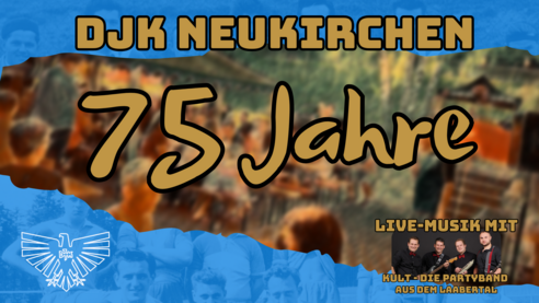 Die DJK Neukirchen St. Christoph feiert ihr 75-jähriges Vereinsjubiläum beim diesjährigen Sommernachtsfest am 27.06.2025 ab 18 Uhr beim Sportheim am Bad.
