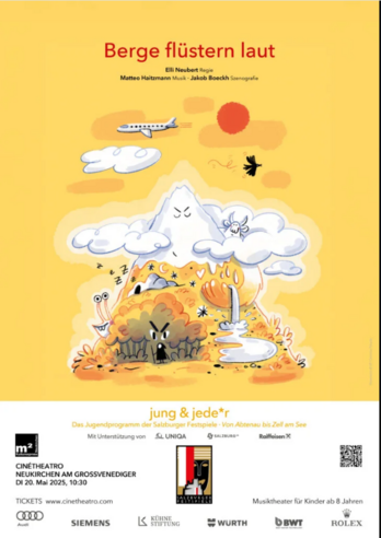 In Berge flüsternlaut lassen drei Performer·innen mit einem Instrumentarium aus großen und kleinen Blockflöten, Geige und Stimme Salzburgs Sagen und Mythen für ein junges Publikum erlebbar werden. Gemeinsam mit dem Regieteam begeben sie sich in der Stückentwicklung auf die Suche nach wundersamen Wesen, seltsamen Orten und zauberhaften Begebenheiten.