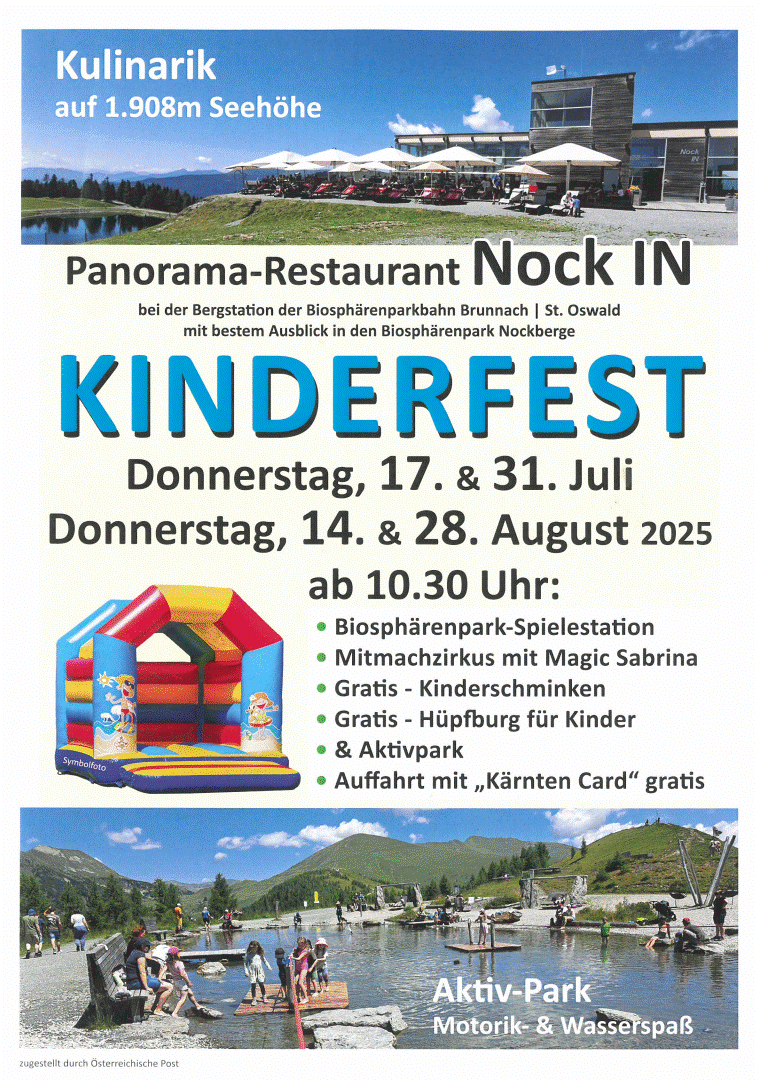 Beim Kinderfest an der Bergstation Brunnach erwarten dich vier unvergessliche Termine voller Abenteuer und Unterhaltung für die ganze Familie. Zwischen Hüpfen, Basteln, Reiten und Staunen erleben die Kleinen einen echten Traumtag inmitten der Nockberge. Das ideale Sommer-Highlight für alle, die gemeinsam frische Bergluft und fröhliche Momente genießen wollen.