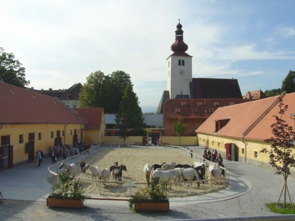 Während der exklusiven Abendführungen entdecken Sie das Gestüt in der stimmungsvollen Atmosphäre der Abenddämmerung. Ein besonderes Highlight ist der traditionelle Weideeintrieb: Unzählige Lipizzaner kehren von den saftigen Weiden zurück in ihre Stallungen. Das donnernde Echo ihrer Hufe hallt über die Wiesen und lässt die Welt für einen Moment den Atem anhalten. Ein Schauspiel, das die tiefe Verbundenheit zwischen Mensch und Tier widerspiegelt und die jahrhundertealte Tradition der Lipizzanerzucht lebendig werden lässt.