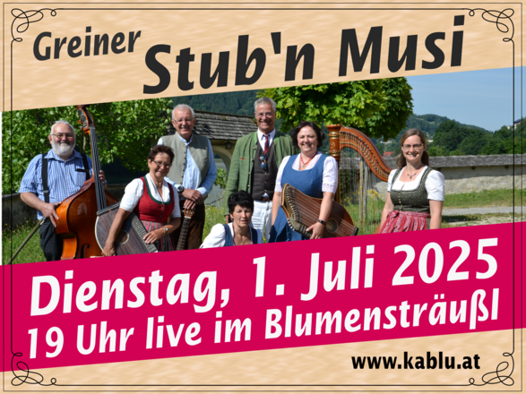 am Dienstag, 1. Juli 2025 im Blumensträußl (bei Schönwetter im Gastgarten)
