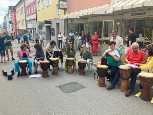 Bayerischafrikanischwaidlerkubanische Rhythmen & Grooves, die in die Beine, Hüften und andere Körperteile gehen. Komponiert, zamgreimt und geleitet von Sigi Lee, erarbeitet in glatteiseskalten und schweißtreibenden Nächten , aufgführt von 16 Trommelbegeisterten, de a mords Freid ham auf ihre Trommeln zu haun.