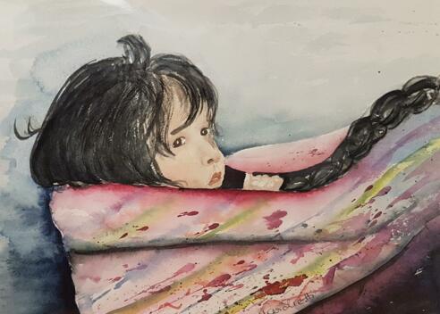 Musikalisch begleitet Judith Sprenger-Laubreiter an der Harfe die Vernissage. Die zauberhaften Harfenklänge verschmelzen mit der Zartheit der Aquarellfarben.