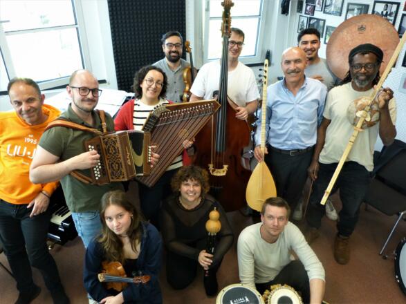 Im Neuen Saal präsentieren junge Talente aus aller Welt gemeinsam mit erfahrenen Dozent*innen, was in einer intensiven Woche globaler Zusammenarbeit entstanden ist.