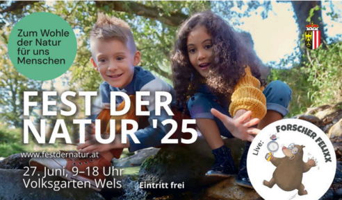 Kleine Entdecker und große Naturforscherinnen sollten sich diesen Termin schon jetzt im Kalender markieren: Oberösterreichs Naturfest findet am 27. Juni im Welser Volksgarten statt und lädt bei freiem Eintritt zu spannenden Abenteuern rund um unsere OÖ heimische Natur ein!