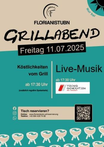 Köstlichkeiten vom Grill ab 17:30 Uhr und Live-Musik mit der Band "Young Generation"
