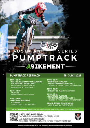 | Preisinformation | 5€ für Kinder 10€ für Jugendliche und Erwachsene Anmeldung vorab online auf der Website der Bikement Austrian Pumptrack Series oder direkt am Eventtag vor Ort bis 10 Minuten vor dem Rennen bei der Startnummernausgabe. |