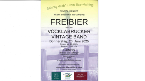 Am 26.Juni.2025 geben die Bluespartie aus Gumpling "Freibier" und die "Vöcklabrucker Vintage Band" ein Revival Konzert in Haining.