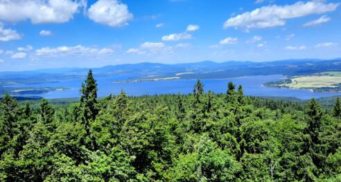 Dort kann man den Blick zu den Alpen bzw. über den Moldaustausee genießen.