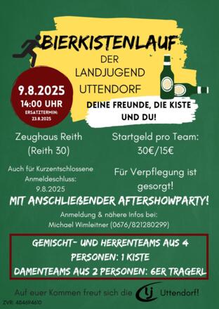 Die Landjugend Uttendorf veranstaltet heuer endlich wieder einen Bierkistenlauf für Jedermann.