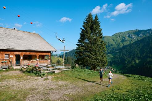 Nur etwa 30 Gehminuten von Schröcken entfernt, auf einem gemütlichen Wanderweg erreichbar, liegt die idyllische Alpe Felle – umgeben von saftigen Bergwiesen und einem atemberaubenden Panorama. Dort zeigen erfahrene Senner mit viel Herzblut, wie aus frischer Alpenmilch in sorgfältiger Handarbeit feinster Käse entsteht. Vom Rühren und Schneiden der frischen Rohmilch bis zum Einfüllen in die Formen: Jeder Handgriff sitzt – und Besucher dürfen live dabei sein.