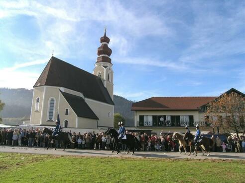 Nach dem Flurumritt mit Pferdesegnung findet anschließend das traditionelle Kranzlstechen bei dem die Reiter ihre Geschicklichkeit unter Beweis stellen statt.