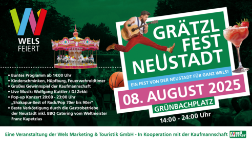 Das beliebte Grätzlfest verwandelt den Grünbachplatz in eine bunte Partyzone für die ganze Familie! Ein abwechslungsreiches Programm sorgt für beste Unterhaltung: