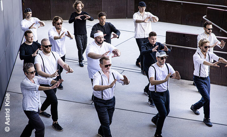 5/8erl in Ehr'n & Jazzorchester Vorarlberg | Sie sind eine der erfolgreichsten Bands aus Wien der letzten Jahre, die sich mit Wiener Soul ihr eigenes Genre geschaffen hat: Unnachahmlicher Zweigesang mit außergewöhnlichen - und oft außergewöhnlich schönen - Lyrics. Verträumte Ausflüge ins "weite Lande", wie schon Schnitzler die Seele bezeichnete, und kantige Ironie aus dem Alltag Österreichs. Zarte, schmetterlingsflügelhafte Balladen und rasante Grooves - alles möglich hier. Die Musik der Achterln war immer schon von Soul, Funk und Reggae geprägt; doch im prachtvollen Setting dieses Programms erhält sie zusätzlich eine umwerfende Energie, kraftstrotzend und doch spielerisch, federleicht und doch von gewichtigem Sound gestützt.