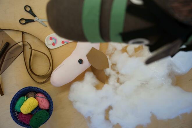 Bau dir aus Socken, Watte, Wolle und Stock den Klassiker unter den Spielzeugen.