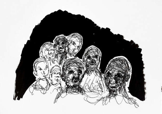 Mit spontanem Strich werden Liniengeflechte immer weiter ausgebaut. Ausgehend von der Abstraktion nähern sie sich immer mehr konkreteren, räumlicheren Gebilden an.
