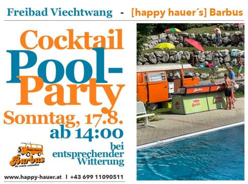 Happy Hauer's Barbus macht Halt im Voralpenbad Viechtwang und lädt herzlich zum Cocktailabend ein.